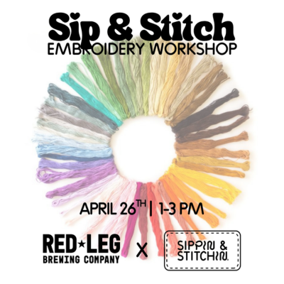 Join us from 1-3 pm on Sunday, April 26th at Red Leg Brewing Co. for a completely different kind of event. During this embroidery “masterclass”, you'll learn various embroidery techniques […]