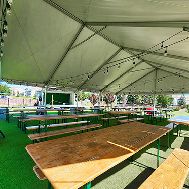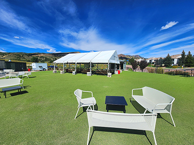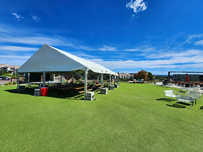 The Lawn is the main feature of the Red Leg facility. Attendees of all ages love playing on the AstroTurf and relaxing in the surrounding rocking chairs. Great for company parties, conferences, networking events, or even a wedding.